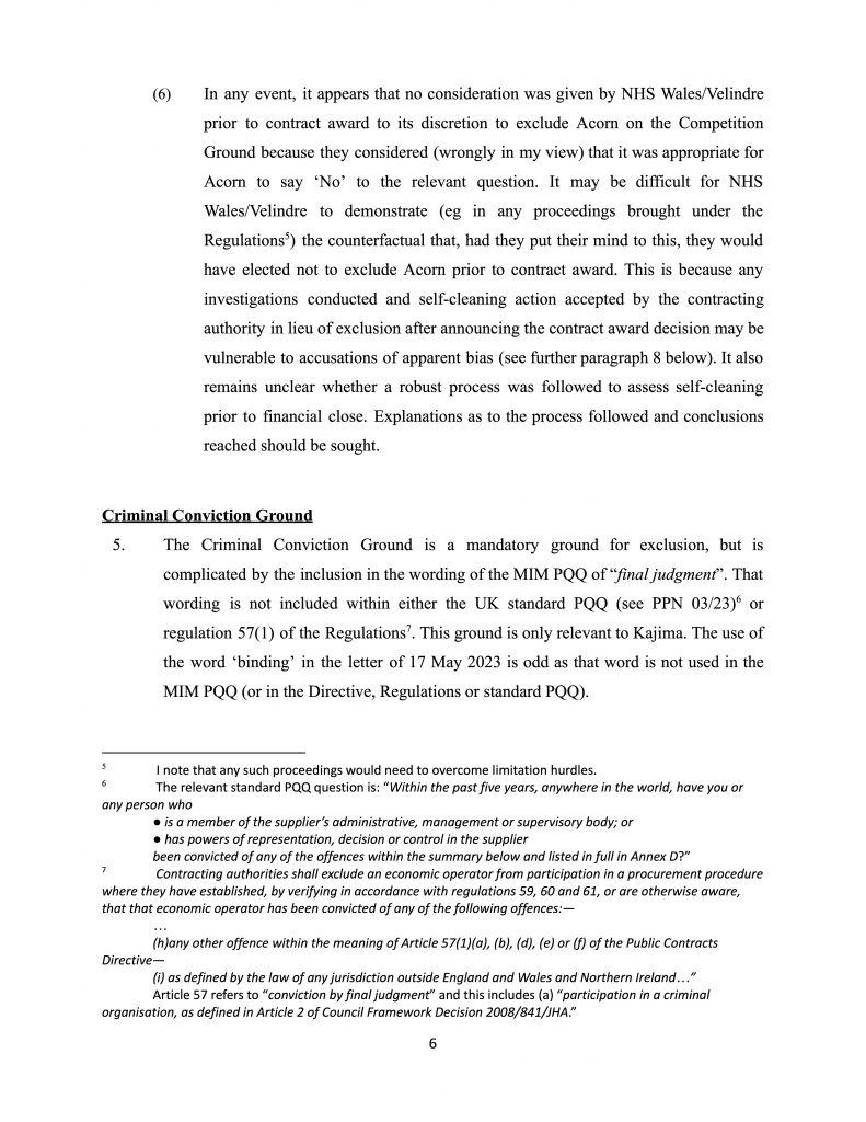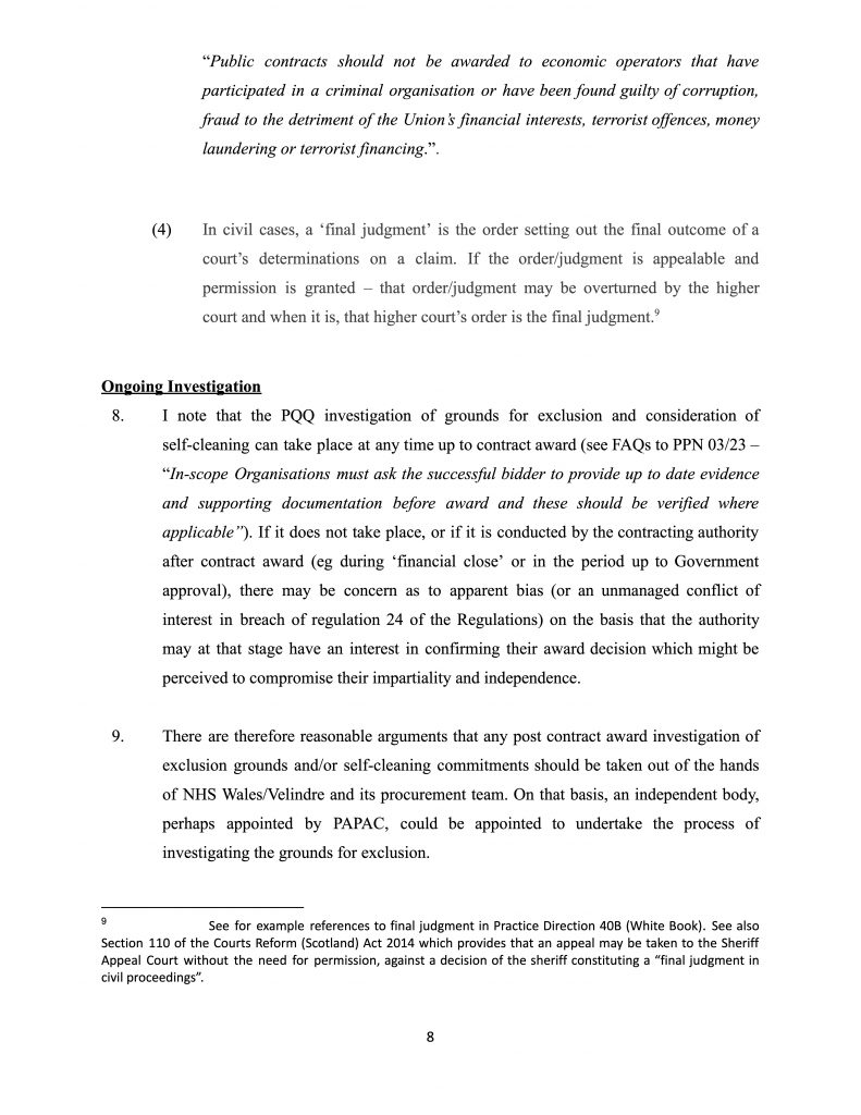 - But it does not end there. The Director’s letter to Colocate Velindre, when rejecting the Complaint, claimed to have subjected it to a final approval from the First Minister: ‘I have given this advice to the First Minister, who has accepted it, and has asked me to write to you to convey my findings’.